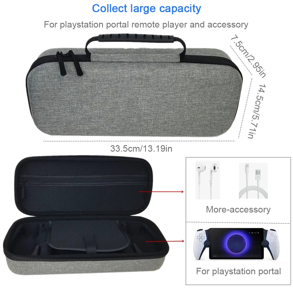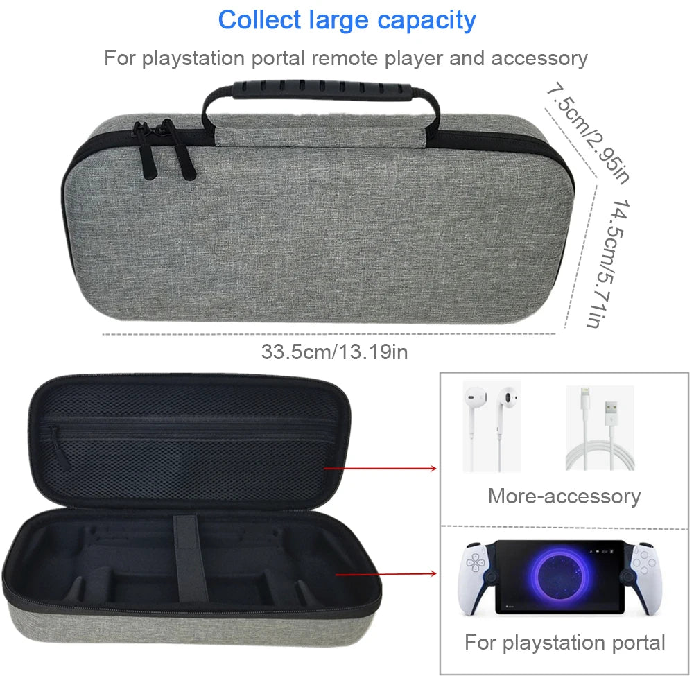 1. Dedicated Design: The hard carrying case Customized mold specifically designed for Sony PlayStation Portal (for PS5 Portal) Remote Player, for travel and on-the-go gaming. The sleek gray color showcases a minimalist design that saves space and is easy to carry. *Does not include the game console.